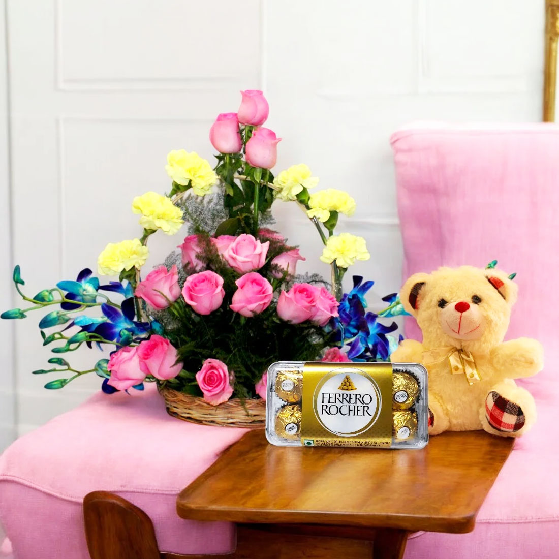 Indulge in the perfect gift with our Sweet Blooms & Chocolates Delight Combo! A beautiful mix of fresh flowers and delicious chocolates, crafted to bring smiles and sweetness. đžđ« Order now from Cake Delivery Pathankot and make every moment special!